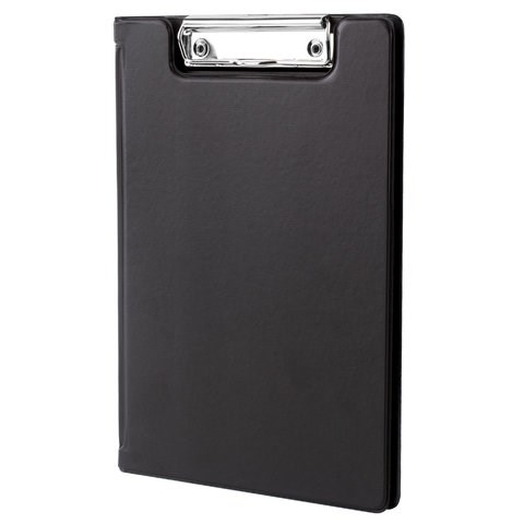 Папка-планшет МАЛЫЙ ФОРМАТ (180х255 мм) А5, BRAUBERG, с прижимом и крышкой, картон/ПВХ, черная, 227980