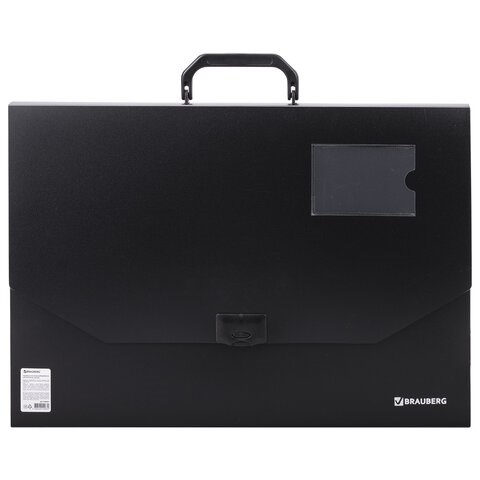 Папка-портфель пластиковая БОЛЬШОГО ФОРМАТА BRAUBERG "ПОРТФОЛИО", А3 (445х310х30 мм), черная, РОССИЯ, 226023