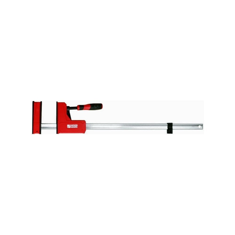 Струбцины корпусные с параллельным винтовым зажимом Woodwork Струбцина параллельная 1000х95. Усилие прижима до 600 кг • струбцины корпусные сборочные с винтовым зажимом Woodwork с параллельными скобами-губками и винтовой эргономичной рукояткой из двухкомпонентного пластика • за счёт большой площади контакта параллельные губки из высокопрочного полиамида не портят ''чувствительную'' поверхность заготовки • идеально подходят для сборки конструкций с прямыми углами и параллельными поверхностями • струбцины WOODWORK серии PCH могут быть надёжно расположены на горизонтальной плоскости для горизонтального крепления на них заготовок • сборочные струбцины этой серии позволяют сжимать заготовки в узких частях там, где зажим для обычных струбцин недоступен • струбцины корпусные с параллельным винтовым зажимом Woodwork можно без вспомогательных инструментов легко использовать для распирания • направляющая винтовых струбцин Woodwork изготовлена из высококачественной стали C45, которую гораздо сложнее согнуть или деформировать • дополнительно направляющая оснащена шестисторонней зубофрезерной "насечкой", позволяющей гораздо надежнее фиксировать подвижную губку на рельсе, тем самым исключая возможность проскальзывания при зажиме, что дополнительно способствует повышению допустимой нагрузки • с учетом того, что сама направляющая выполнена из качественной стали, эта «насечка» будет долго сохранять свою форму и не сотрется в процессе работы • бренд WOODWORK (Россия)