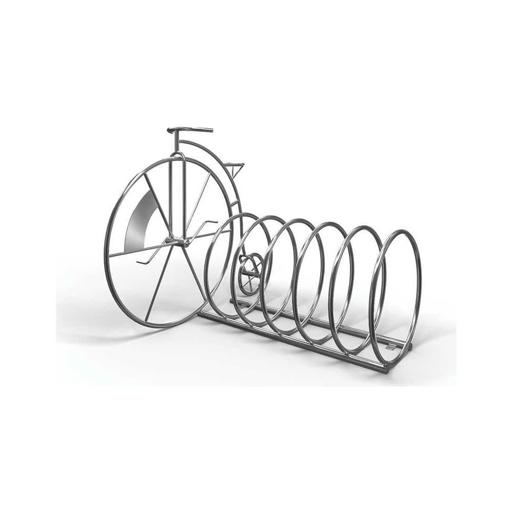 Парковка на 5 мест ООО Доминант Ретро велосипед AISI 304 D-B4/05 разработана и предназначена для двустороннего и/или одностороннего хранения велосипедов. Удерживает велосипеды в горизонтальном положении и обеспечивает их компактное размещение. Крепление велопарковки производится по месту на предусмотренные крепежные отверстия, обеспечивающие жесткое и устойчивое положение изделия. Выполнена из нержавеющей трубы AISI 304 (08Х18Н10), поверхность полированная. Элементы велопарковки образуют сборную конструкцию посредством соединения аргонно-дуговой сваркой, которая обеспечивает пространственную жесткость конструкции.