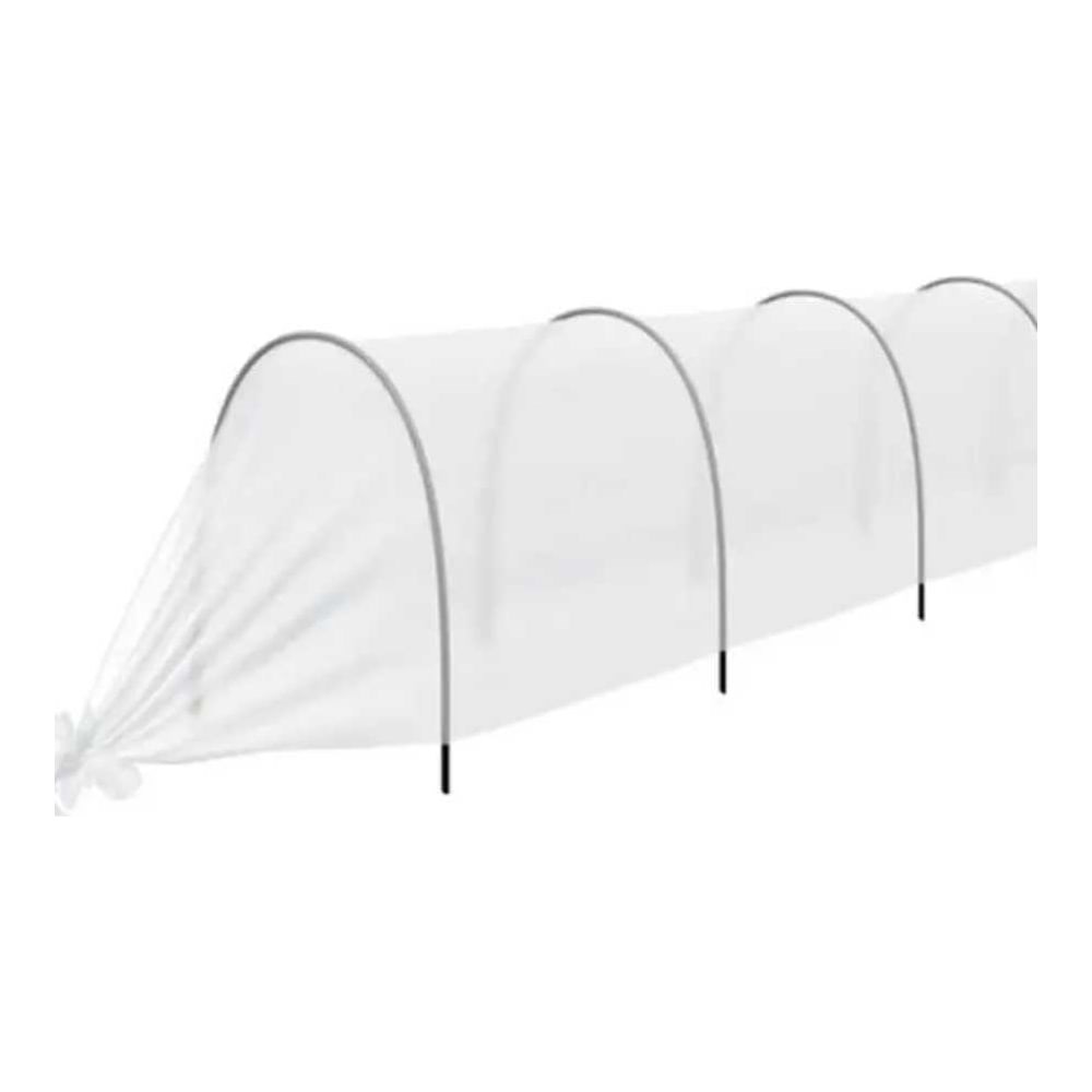 Парник "Дачник" с металлическими дугами 6,5 м; Парник "Дачник" длиной 6,5 м представляет собой конструкцию из металлических дуг и укрывного материала. Используется для защиты овощных и ягодных культур от перегрева, легких заморозков, природных осадков, ветра, птиц, а также создает благоприятный микроклимат для растений. В собранном виде размер парника "Дачник" (ДхШ) 2,1х6,5 м. Укрывной материал Спанбонд № 42 имеет пористую структуру и оптимальную плотность для поддержания естественной вентиляции и рассеивания солнечного света. Проденьте дуги в прошитые рукава укрытия, воткните их в землю. Края спанбонда закрепите с помощью лент за колышки, воткните колышки в грунт.