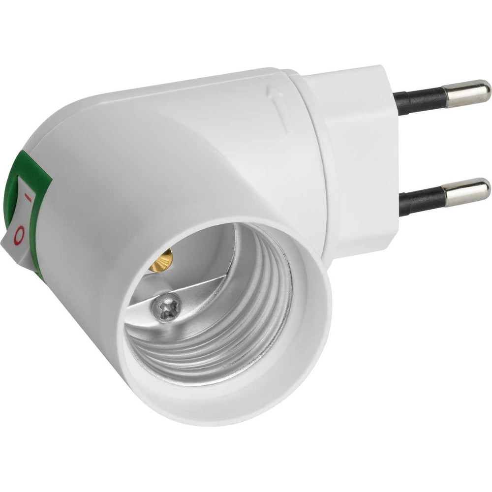 Переходник вилка-Е27 с выключателем duwi позволяет подключить лампу непосредственно к розетке или удлинителю и обеспечить освещение там, где это необходимо. Прибор особенно востребован на стройках, в гаражах, дачных домах, теплицах и т.д., используется в качестве временного источника света. Совмещается со всеми типами ламп с цоколем E27. Благодаря изогнутой форме может использоваться в качестве бра с лампой, повернутой как вверх, так и вниз. Корпус оснащен кнопкой и поворотным механизмом, что позволяет регулировать угол наклона, включать и выключать прибор, не вынимая из розетки.