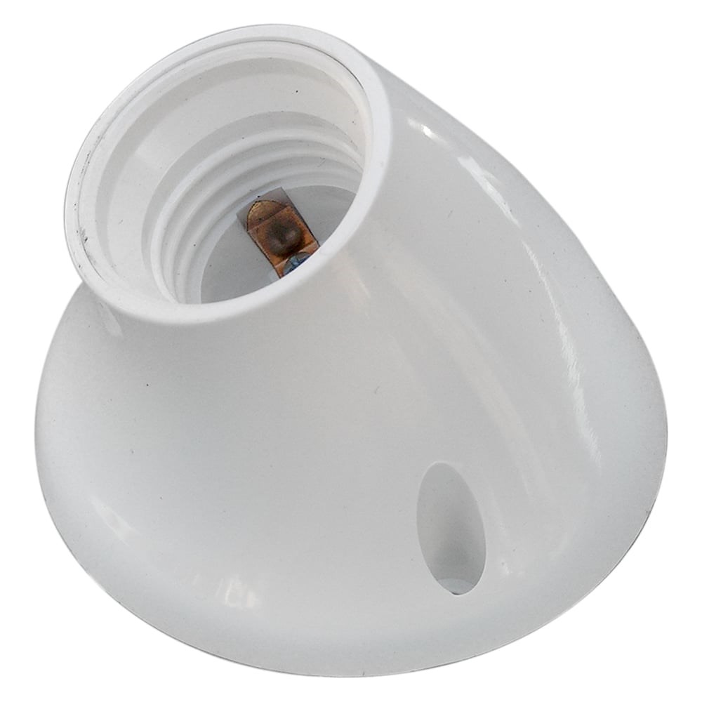 Патрон-стойка наклонный для лампы конический с цоколя Е27 белый. Предназначен для настенного монтажа при устройстве сетей освещения. Используется для установки и подключения любых ламп (накаливания, светодиодных, люминесцентных) со стандартным цоколем E27. Корпус патрона изготовлен из ПВХ.
