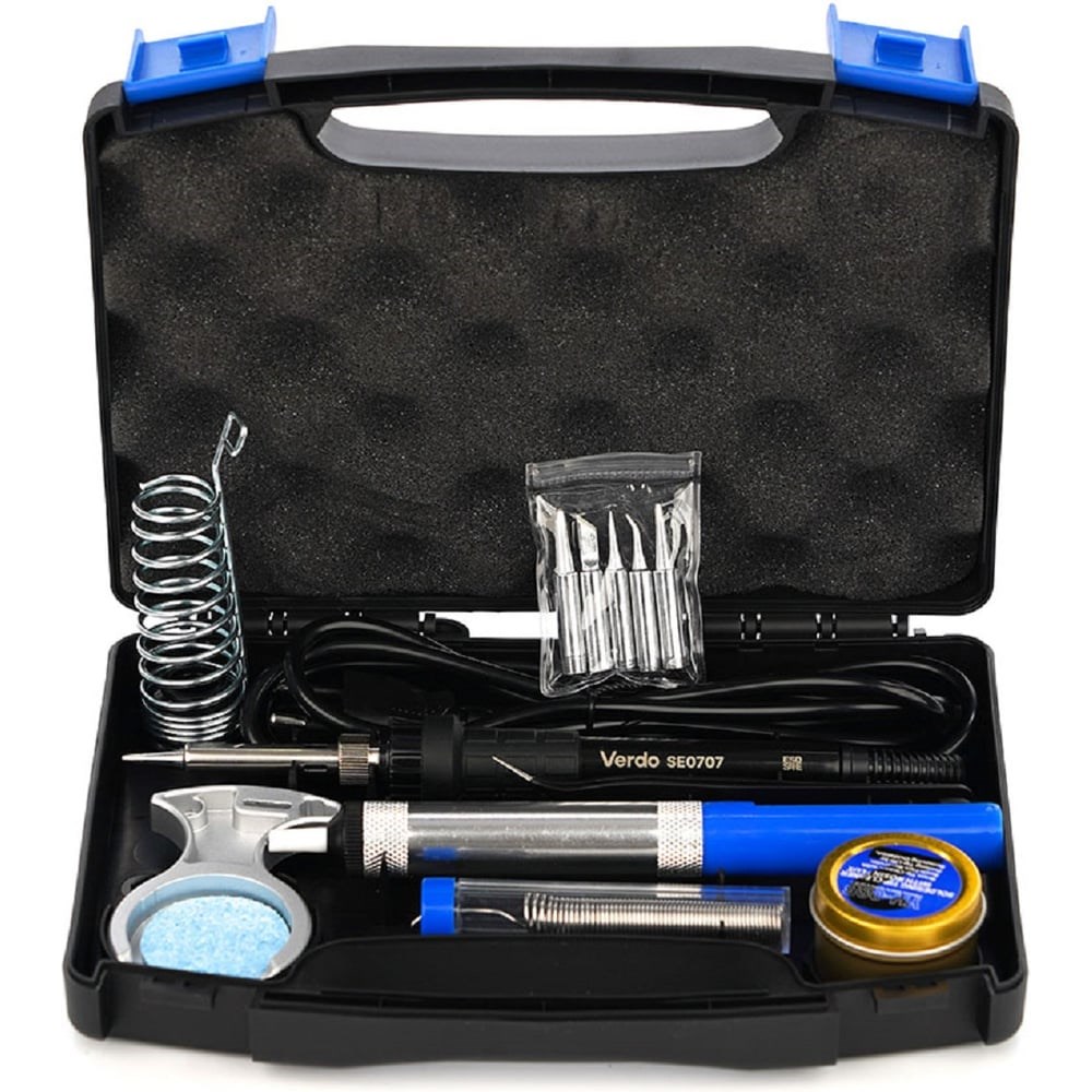 Паяльник VERDO SE0203 – это универсальный инструмент, который идеально подходит как для профессионалов, так и для любителей. В комплекте вы найдете 13 предметов, необходимых для выполнения различных задач, связанных с пайкой. С мощностью 60 Вт и керамическим нагревателем, этот паяльник быстро и эффективно нагревается, что обеспечивает высокое качество соединений и удобство в работе.Этот паяльный набор станет отличным помощником для выполнения бессвинцовой пайки, обеспечивая надежные соединения без вредных веществ. Паяльник позволяет работать с различными пластиковыми и металлическими компонентами, что делает его отличным выбором для ремонта электроники и мелких бытовых устройств.Паяльник электрический VERDO SE0203 отличается простотой в использовании и надежностью. Его можно использовать как в условия мастерской, так и дома. Компактный размер и качественная сборка делают его идеальным вариантом для тех, кто ищет надежный инструмент для выполнения мелких и крупных ремонтов.Неважно, являетесь ли вы опытным мастером или начинающим энтузиастом, этот паяльный набор полностью удовлетворит ваши потребности и станет незаменимым помощником в любых проектах.