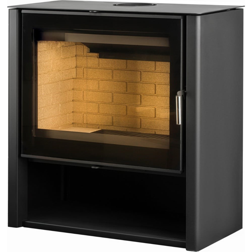 Пристенная печь с оригинальным и лаконичным дизайном. Большая плоская топочная дверка. Идеально подходит для обогрева помещения, выполненного в современной стилистике площадью 45-90 м2. Размер поленьев 30 – 60 см.