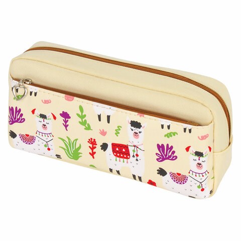Пенал мягкий ЮНЛАНДИЯ, 2 отделения, полиэстер, "Llama", бежевый, 20х6х9 см, 228981