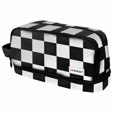 Пенал-органайзер HEIKKI (ХЕЙКИ) с ручкой, значки, 2 отделения, откидная планка, 22x13х10 см, "Black&White", 273601