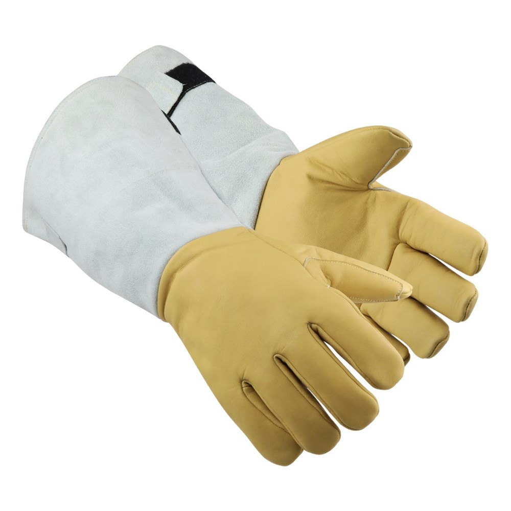 Перчатки защитные, утепленные от пониженных температур, для эксплуатации в климатических регионах (пояса) – III (II), II (III), IБ (IV), IА («особый»), повышенных температур (конвективной теплоты, теплового излучения, контакта с нагретой (до 350˚С) поверхностью, искр и брызг расплавленного металла) механических воздействий (прокол, порез, истирание), воздействия крайне низких (криогенных) температур (например, при контактах с жидким азотом). Испытаны жидким азотом при -197°C в течение 10 секунд.