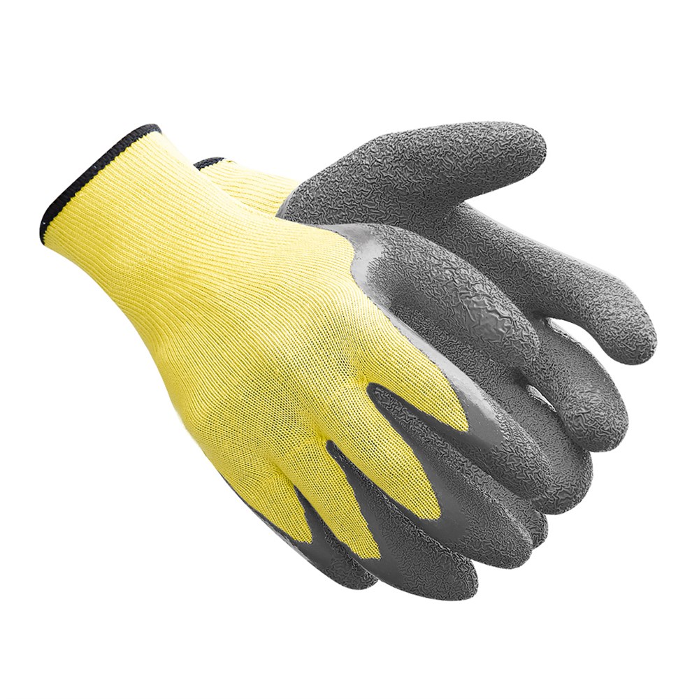Трикотажные перчатки с пенорезиновым покрытием для защиты от механических воздействий и общих производственных загрязнений. Перчатки представляют собой бесшовную трикотажную основу, на которую в области ладони и кончиков пальцев нанесено резиновое покрытие. Основа перчаток изготовлена из волокон, обладающих большой механической прочностью и эластичностью, что позволяет перчаткам принимать форму кисти пользователя. В состав полиэфирного волокна добавлены антимикробные модифицированные полипропиленовые волокна (не менее 40 %), являющиеся бактериостатическим компонентом. Рельефное резиновое покрытие на основе натурального латекса обеспечивает защиту ладони пользователя от механических воздействий (истирание, порез, прокол), влаги и общих производственных загрязнений, а также обеспечивает превосходный захват предметов с любых поверхностей.