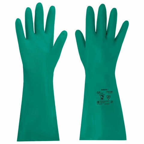 Перчатки нитриловые КЩС, ULTRA STRONG, химически устойчивые, с хлопковым напылением, зеленые, размер 8-8,5 M (средний), RABBITEX, 700911