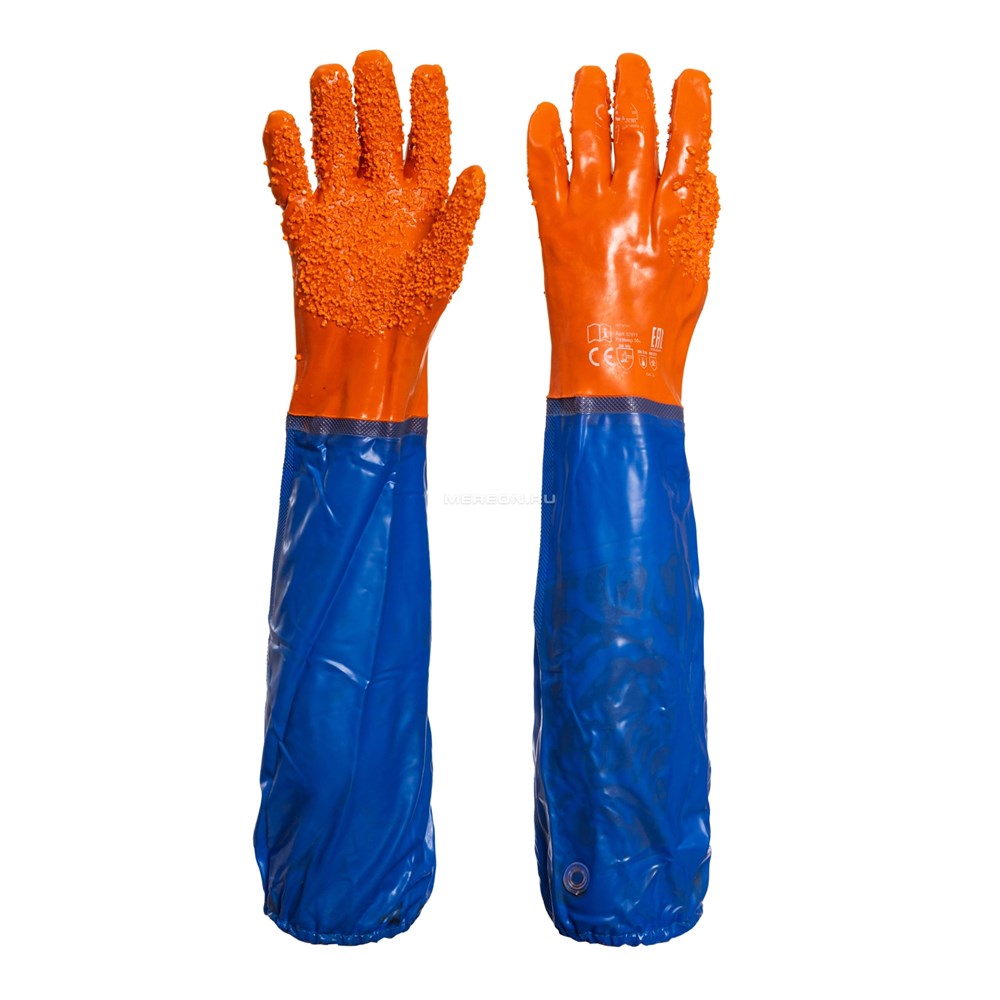 Покрытие перчаток обеспечивает надежную защиту от воды, пищеварительных соков и крови, так же выносливо к дезинфицирующим и моющим средствам, благодаря высокой прочности и эластичности обеспечивают защиту рук от механических повреждений. Перчатки пятипалые имеют гранулированную поверхность ладонной части, которая препятствует скольжению и обеспечивает необходимый захват. Ткань водонепроницаемая стойкая к воздействию жиров, дезинфицирующих средств, и механических повреждений. Ладонная часть перчаток покрыта гранулами ПВХ и имеет шероховатую поверхность препятствующую скольжению. Нарукавники герметично закрывают руку до предплечья и фиксируются с помощью резинки. Непромокаемы. Соединительные швы перчаток и нарукавников надежно пропаяны.Герметичные, НМС, МБС, К50Щ40