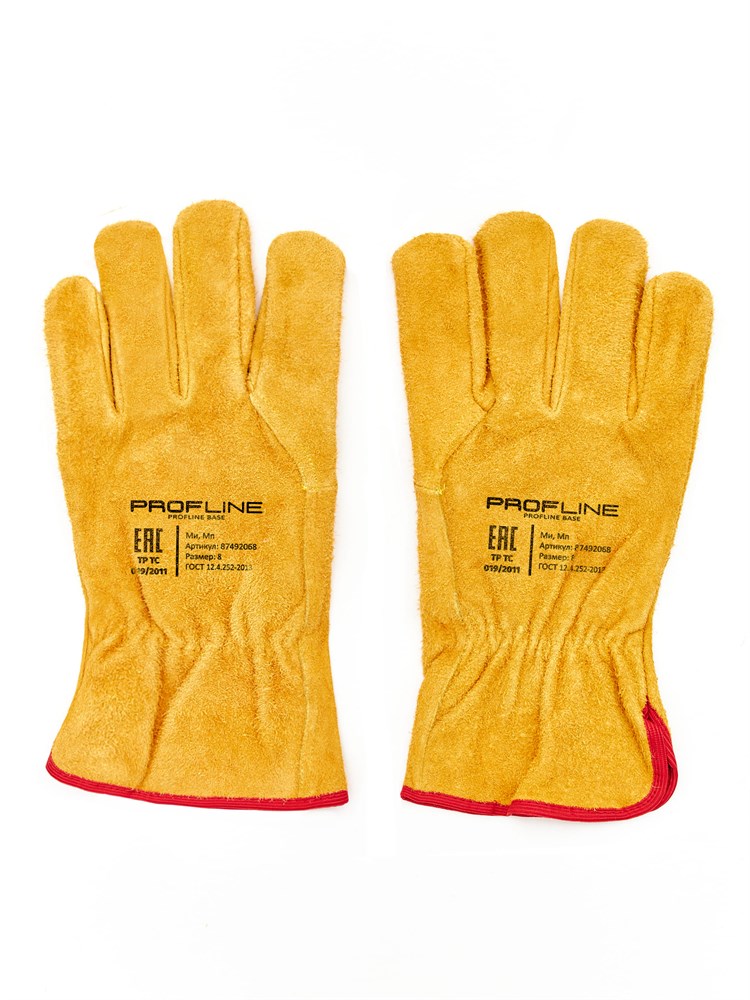 Перчатки для защиты от механических воздействий из цельного спилка желтого (золотого) цвета. Спилок КРС- спинная часть шкур, прошедших предварительную сортировку, спилок однородный, сорт B (1,2+/-0,1мм), шлифованный, желтого (золотого) цвета. На запястье резинка. Перчатки обеспечивают высокий комфорт, рекомендованы для продолжительного ношения, могут быть использованы для проведения общих работ для защиты от механических воздействий в отсутствии жидких загрязнителей, таких как масло, водные растворы и тд, для защиты рук от ОПЗ, истирания, при работе с инструментом, для водителей.