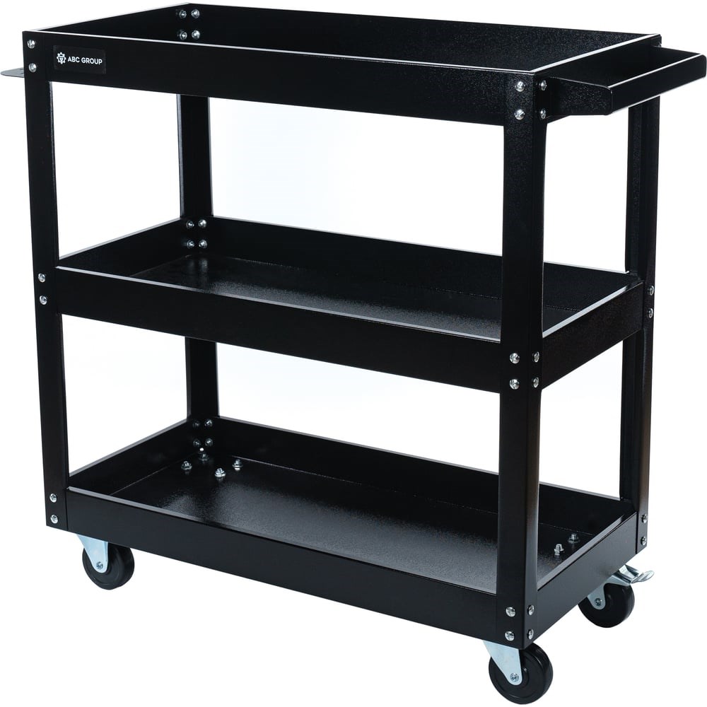 Передвижная тележка ABC с 3-мя полками, черная ПТ3-Т предназначена для хранения и перемещения инструментов, деталей и других предметов. Маневренность тележки достигается за счет комплекта термостойких нейлоновых колес, а также наличием тормоза на одном из колес. Модель имеет прочную металлическую конструкцию, что обеспечивает надежность и долговечность. Широкая рукоятка удобна для перемещения тележки с содержимым.