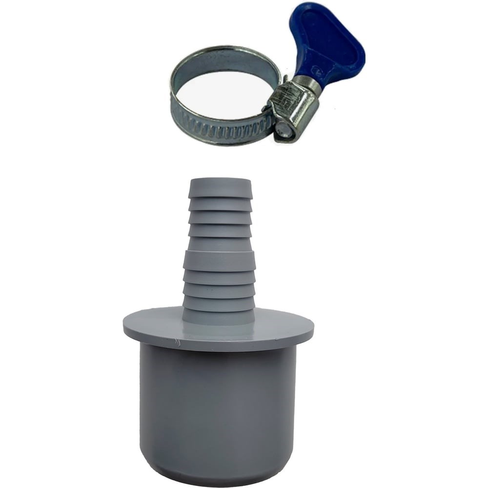Переходник для подключения сливного шланга предназначен для присоединения сливного шланга к фитингу внутренней канализации для обеспечения слива воды из бытовой техники. Переходник предназначен для подключения сливных шлангов диаметром 20 мм и 23 мм. При необходимости можно срезать концевые елочки до расширения. В комплекте хомут-бабочка для надежного и герметичного соединения шланга с переходником.