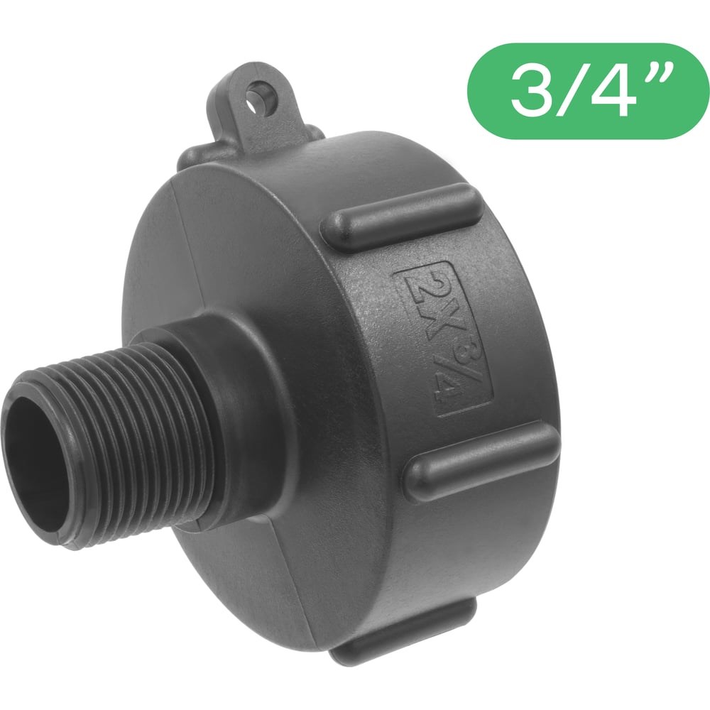 Переходник на еврокуб используется в системах полива, накручивается на кран еврокуба. Служит для перехода с мелкой резьбы крана еврокуба (она же обычная трубная двухдюймовая резьба) на стандартную метрическую (трубную) наружную резьбу 3/4". В комплекте есть уплотнительная прокладка для более герметичного соединения. Не имеет неприятного запаха, не трескается на морозе, не деформируется при высоких температурах. Прост в монтаже и удобен в эксплуатации. Применение: Организация полива в саду, хранение технической воды и других жидкостей. НЕ предназначен для питьевой воды. Материал: Полиэтилен (PE) – polyethylene (PE) —термопластичный полимер этилена.