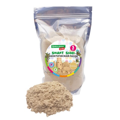 Песок для лепки кинетический, цвет песочный, 3000 г, пакет, BRAUBERG KIDS, 666003