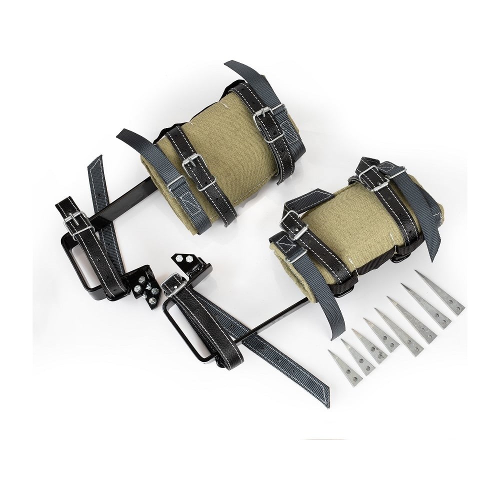 Пики-древолазы ПД-003мПики-древолазы (гаффы) для перемещения по стволам деревьев.Основание выполнено из стали толщ. 6 мм.Два комплекта сменных шипов: 100 мм – для деревьев с толстой корой, 70 мм – для деревьев с тонкой корой.Шипы сменные, крепление шипов болтами 6 мм.Широкие мягкие кушаки устанавливаются в зоне голени.Каждая пика комплектуется кожаными ремнями.Масса пик с ремнями – 3,9 кг.Состав: стальное основание с супортом, комплект шипов для деревьев с толстой и тонкой корой.Кушак, оборудованный вспомогательными ремнями для предварительного крепления.Набор ремней для крепления ступни к основанию лазов и кушака к голени пользователя.Комплект крепежных элементов – гаек и винтов.Назначение: подъем на деревья хвойных и лиственных пород.Количество шипов установленных на одном лазе — два,один основной, для подъема и спуска, другой — вспомогательный, для перемещения вокруг оси дерева.Статическая нагрузка: 90 кгс (09кН)Размеры обуви, РФ: 40-46 (26-29 см)ТУ 4737-001-50338810-2010Срок гарантии (кроме шипов и кушака) устанавливается 36 месяцев со дня ввода в эксплуатацию. Срок службы 5 лет.Внимание! Вам необходимо обязательно ознакомиться с инструкцией для того, чтобы правильно отрегулировать и использовать данное изделие. Перед рабочим использованием мы рекомендуем вам выполнить несколько пробных подъемов и спусков, находясь на безопасной высоте, чтобы выработать необходимый для продуктивной работы навык. К работе допускается персонал, прошедший обучение приемам работы на высоте. При подъеме необходимо использовать пояс предохранительный (систему удерживающую: удерживающую привязь со стропом и защитные перчатки с ПВХ нанесением.