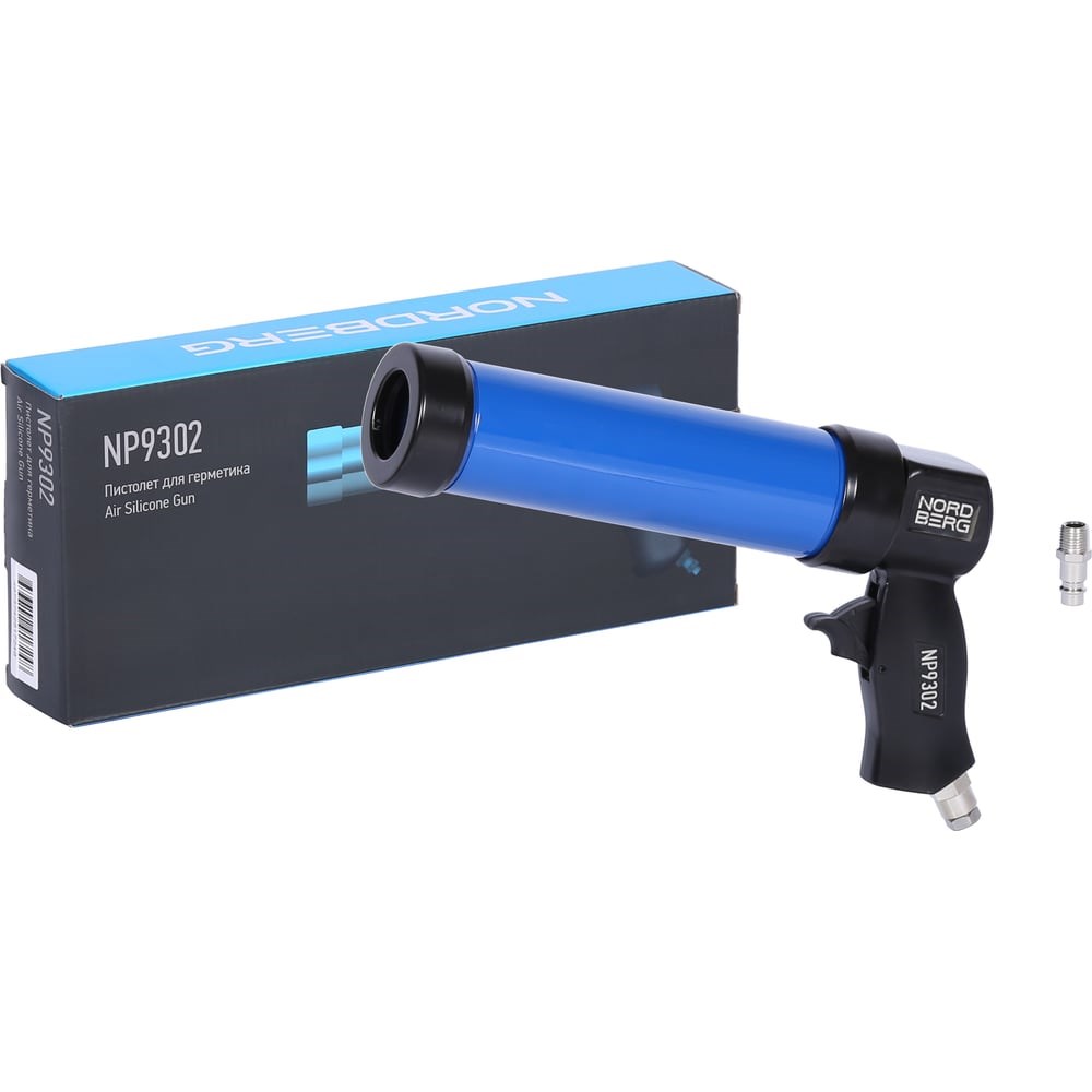 NORDBERG NP9302 — пневматический пистолет для герметика. Используется при кузовном ремонте автомобилей, вклейке стёкол, панелей, а также в строительных и ремонтных работах. Функционал Предназначен для нанесения герметиков, клеев и других материалов с целью создания герметичных соединений или заполнения швов. Используется при кузовном ремонте автомобилей, вклейке стёкол, панелей, а также в строительных и ремонтных работах. Преимущества Расход сжатого воздуха 113 л/мин обеспечивает равномерное нанесение материала; Рабочее давление 5 бар, максимальное 8 бар, что позволяет использовать различные типы герметиков; Поддерживает тубы объёмом 310 мл с диаметром цилиндра 50–216 мм; Входное отверстие 1/4" NPT совместимо с большинством стандартных систем сжатого воздуха; Отсутствие остаточного давления после завершения работы предотвращает самопроизвольное вытекание герметика; Алюминиевый корпус устойчив к механическим повреждениям и коррозии. Удобство использования Лёгкий и удобный в работе: снижает нагрузку на руки оператора за счёт пневматического привода; Быстрая смена тубы: удобный механизм установки картриджа ускоряет процесс работы; Компактные размеры позволяют работать даже в ограниченном пространстве; Лёгкая очистка: корпус не требует сложного ухода, достаточно периодической очистки от остатков герметика.
