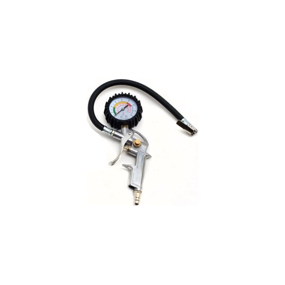 Пистолет для подкачки шин СЕРВИС КЛЮЧ – это пневматический инструмент для автомобилистов, велосипедистов и владельцев других транспортных средств. Он применяется для контроля давления, сброса и подкачки при обслуживании шин в диапазоне рабочего давления от 0 до 16 BAR. Широко используется в автомастерских, сервисных центрах и гаражах автолюбителей.Инструмент состоит из прочного алюминиевого корпуса с эргономичной ручкой, на которой находится кнопка пуска и стравливания воздуха, что обеспечивает удобство использования. Манометр (D=75 мм) с четкой шкалой позволяет контролировать давление воздуха в процессе подкачки. Гибкий шланг длиной 360 мм с штуцером внутренняя резьба которого 1/4”. Благодаря специальной петле на корпусе устройство легко хранится в подвешенном состоянии. Используется с автомобильным насосом/компрессором. Поставляется в блистере.