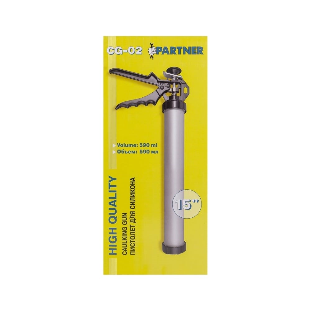 Пистолет для силикона с тубой стандартного объема до 590 мл от бренда Partner — это надежный инструмент, изготовленный из алюминия, что обеспечивает его прочность и легкость. Он предназначен для удобного и точного нанесения герметиков и силикона на различные поверхности.Ключевые характеристики:Материал: Алюминий, что делает пистолет легким и долговечным.Объем тубы: Стандартный объем до 590 мл.Корпус: Закрытый алюминиевый корпус для долгого срока службы.Поршневая система: Обеспечивает надежное и равномерное выдавливание материала.Преимущества:Эргономичная ручка: Удобная рукоятка обеспечивает комфортный хват и предотвращает скольжение, что делает работу более безопасной и эффективной.Упрощение процесса работы: Одним легким нажатием на курок можно выдавить необходимое количество герметика или силикона, что значительно ускоряет процесс.Легкость замены тубы: Туба герметика быстро и надежно закрепляется в пистолете, а также легко заменяется при необходимости.Применение: Пистолеты для герметика и силикона широко используются в строительстве, ремонте и отделке. Они позволяют как профессионалам, так и домашним мастерам точно и равномерно наносить герметики и силиконы на различные поверхности, обеспечивая высокое качество работы.Пистолет для силикона с тубой до 590 мл — это практичный и надежный инструмент, который станет отличным помощником в любых задачах, связанных с нанесением герметиков и силиконов.