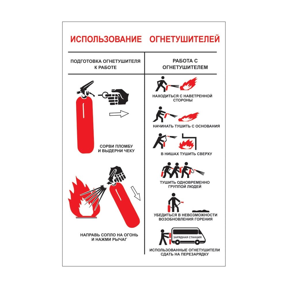 Плакат направлен на повышение общей противопожарной подготовки населения. Описываются основные принципы пользования огнетушителем, а также основы пожаротушения