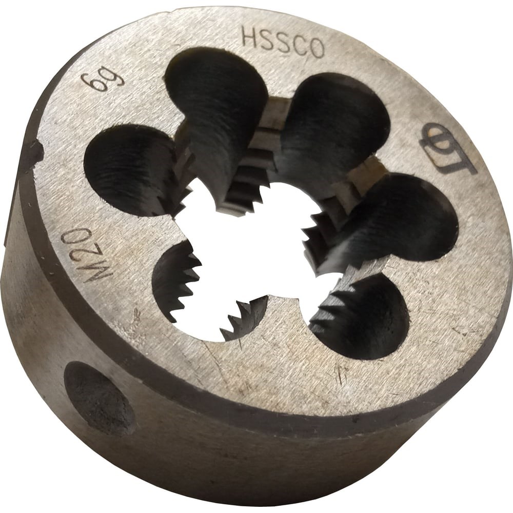 Плашка выполнена из материала HSS Co5 - быстрорежущая сталь с содержанием кобальта 5% (аналог отечественной Р6М5К5). Резьба М16 с основным шагом 2. Диаметр - 45 мм. Толщина - 18 мм. Предназначена для нарезания внешней резьбы.