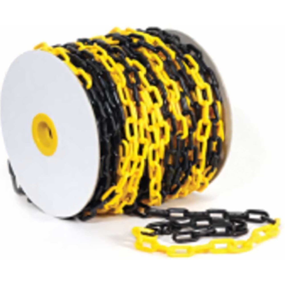 Пластиковая сигнальная цепь ТЕХНОЛОГИЯ черно-желтая, 8 мм, бухта 50 м 00-00000143Цепь пластиковая сигнальная черно-желтая предназначена для временного или постоянного ограждения строительных площадок, парковок и дорожных участков или во время проведения строительных работ. Она отлично подходит для разметки на стройке, в дорожном хозяйстве, при организации дорожного движения и временных ограничений доступа.Изделие отличается крупной ячейкой и цельнолитым звеном толщиной 8 мм, что гарантирует прочность на разрыв и долговечность в условиях строительства.Благодаря ярким и контрастным цветам она хорошо заметна издалека и подходит для использования с оградительными и дорожными столбиками и другими элементами разметки. Материал изготовления цепи устойчив к воздействию солнца и осадков: черные и желтые звенья не выцветают со временем, а изделие сохраняет яркий контрастный цвет. Пластмассовая структура исключает коррозию, что обеспечивает долгий срок службы даже при интенсивной эксплуатации на открытом воздухе.Цепь поставляется бухтой 50 метров, что обеспечивает легкость транспортировки к месту монтажа и быстрой установке ее на нужной территории без специальных инструментов.Ее применение эффективно при организации строительных объектов, дорожного движения или массовых мероприятий на площадках разного назначения.