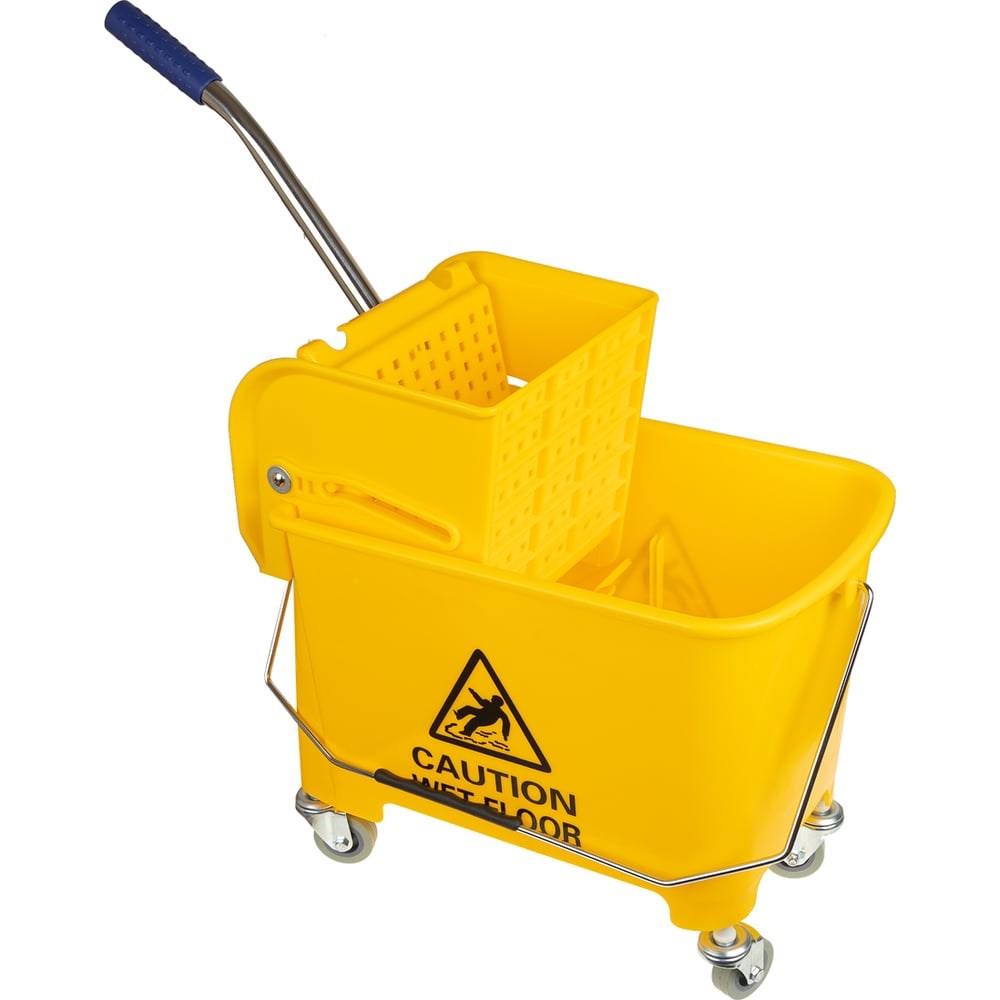 Ведро на колесах с отжимом 20л. NV-10250-Y. Легкое и надежное ведро на колесах с универсальным отжимом, подходит для любых типов мопов. Ведро на колесах поможет быстро провести влажную уборку в небольших помещениях: квартирах, офисах, магазинах и т.д. Качественный ударопрочный пластик обеспечивает длительную работу. Отжим грязной воды осуществляется в отдельный отсек с перегородкой. Высокие колеса обеспечивают хорошую маневренность и проходимость ведра.