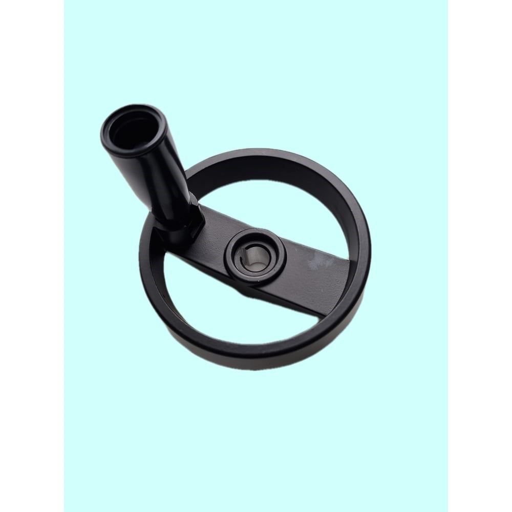 Пластиковый маховик со складной ручкой UnitMC 100х12 100302.2 применяется как штурвал для вращения сопряженных валов, винтов при регулировании. В основном устанавливается на станках, различных производственных установках и оборудовании. Маховик из промышленного пластика PA66 с запрессованной в него стальной втулкой с отверстием диаметром 12мм и шпоночным пазом 4мм.