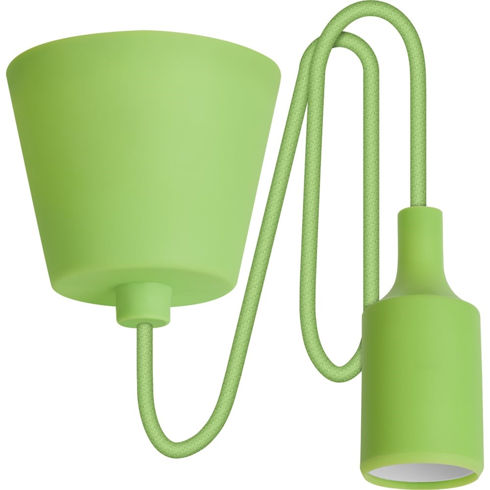 Пластиковый патрон E27 REV с подвесом 1 м, зеленый 24644 2 предназначен для любых ламп с цоколем Е27. Материал корпуса: пластик с силиконовым покрытием зелёного цвета. Для крепления подвеса в комплект входят клеммная колодка и пластиковая петля. Диаметр основания подвеса - 9 см, высота основания подвеса - 7 см. Диаметр патрона - 4 см, высота патрона - 9 см. Длина провода 1 м.