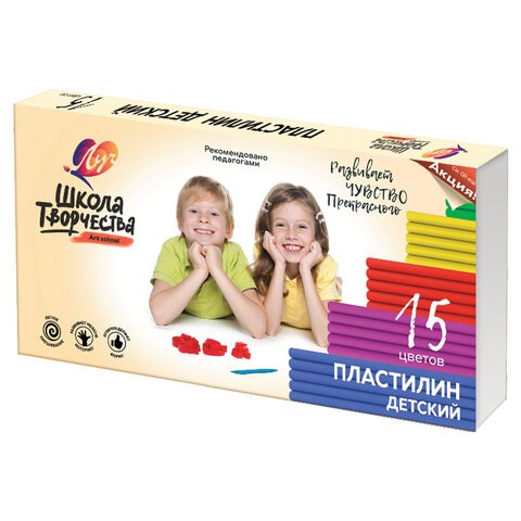 Пластилин классический ЛУЧ "Школа творчества", 15 цветов, 300 г, стек, картонная упаковка, 29С 1764-08