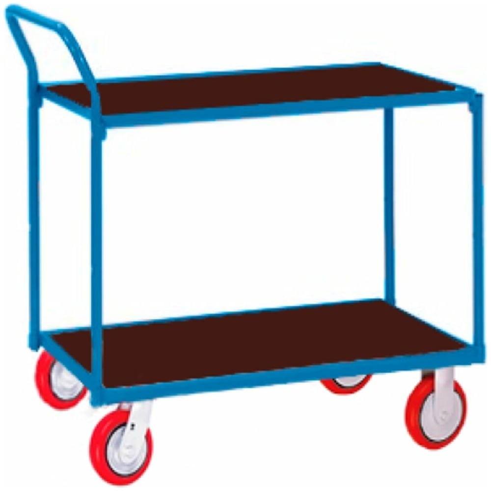 Платформенная тележка МосТележка сервисная, 2-х ярусная, 520x820 мм ТЯС2.1-8252 легка и проста в применении. Идеально подходит для перевозки евробоксов, ящиков, коробов или лотков на складах, в торговых залах, на производстве. Предназначена для регулярного, интенсивного использования. Имеет устойчивое к царапинам порошково-полимерное покрытие синего цвета RAL 5012.