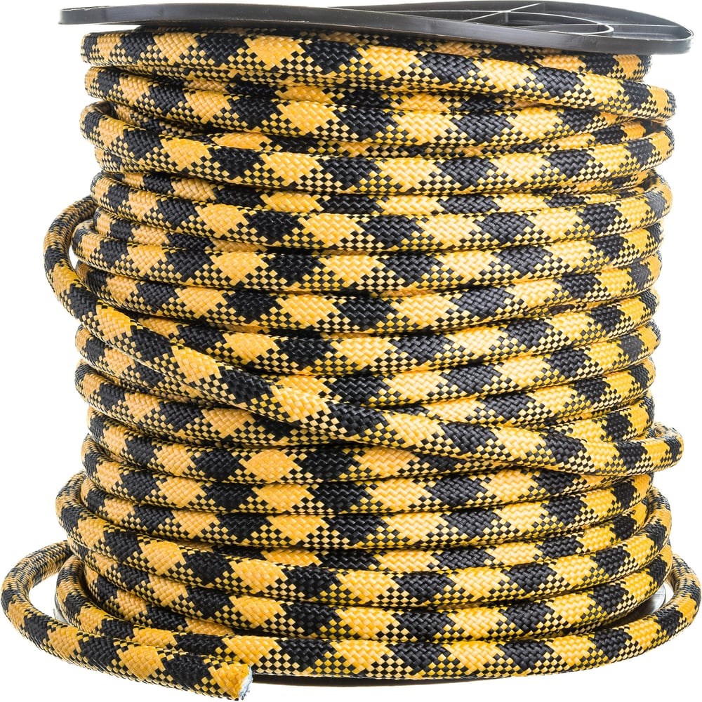 Веревка плетёная полипропиленовая с сердечником. Используется на строительных площадках при поднятии и закреплении грузов, на производствах. Плетёная веревка стойкая к износу и многократным изгибам, при истирании нити веревка не распускается и продолжает держать груз. Плетеная веревка практически не впитывает влагу, что очень удобно при использовании ее на воде. При производстве плетеной веревки используются качественные красители и стабилизаторы, что в свою очередь делает веревку не только прочной, но и устойчивой к кислотам, щелочам и УФ-излучению.