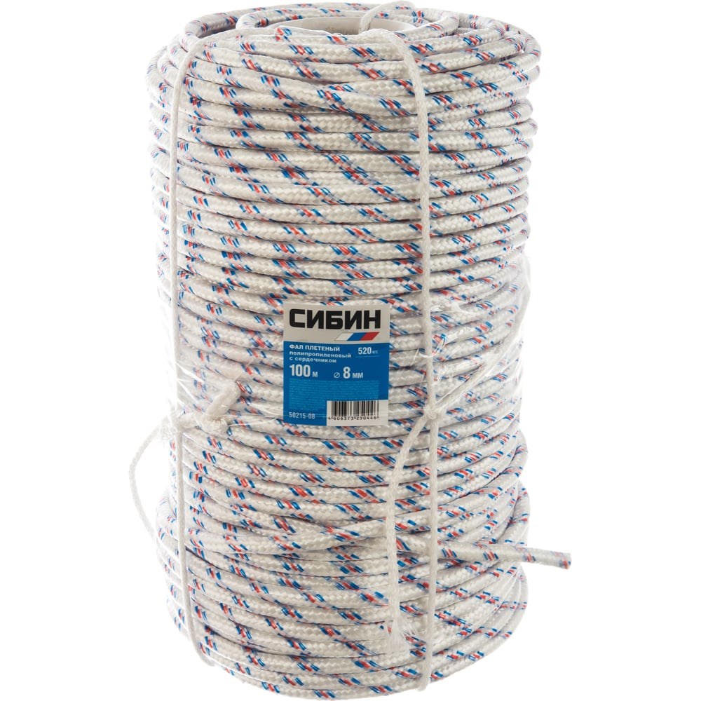 Плетёный полипропиленовый 16-прядный фал с полипропиленовым сердечником, диаметр 8мм, бухта 100м, 520кгс СИБИН 50215-08 - изделие для хозяйственно-бытовых нужд. Обладает высоким качеством исполнения. Не боится ультрафиолетового излучения и воды, не тонет и не гниет. Не усаживается и не теряет прочность во влажной среде. Также фал устойчив к воздействию кислот, щелочей и растворителей.