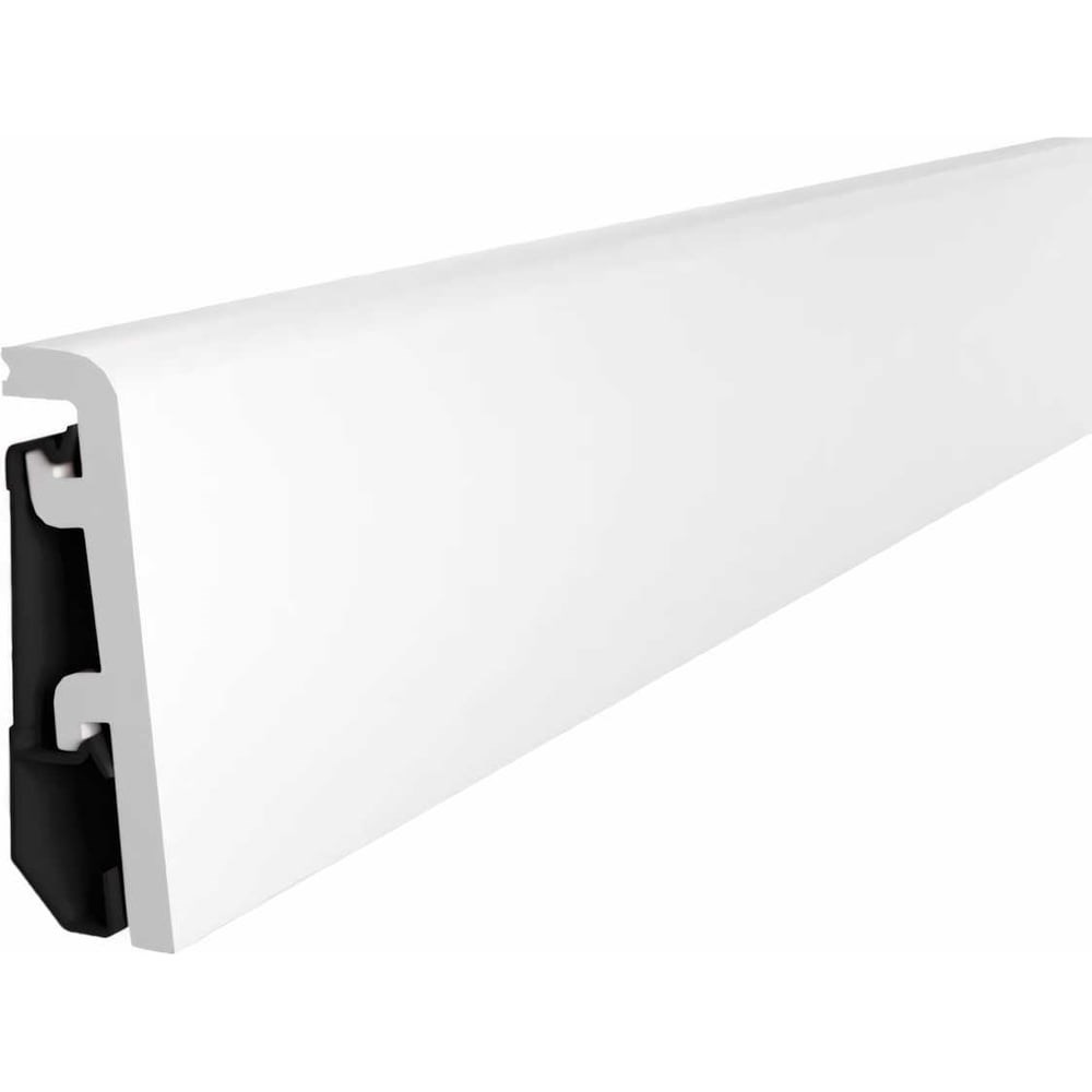 Белый напольный плинтус Arbiton Vega под покраску изготовлен из качественного материала - дюрополимера. Плинтус подойдет под любое напольное покрытие ламинат или ПВХ плитку. Покрасить плинтус можно в любой цвет любой краской, не содержащей ацетон. Является идеальным решением для использования в случаях, когда необходимо замаскировать электрические или телевизионные кабели. Перекрывает деформационный зазор до 20 мм. Неоспоримым преимуществом является водонепроницаемость и твердость поверхности, защищающая от ударов и повреждений, нанесенных стене (т.е. при мытье шваброй). Устанавливается на предварительно прикрепленное к стене основание, основу можно прикрепить к стене четырьмя способами: клеем, двухсторонним скотчем, степлером и дюбелями.