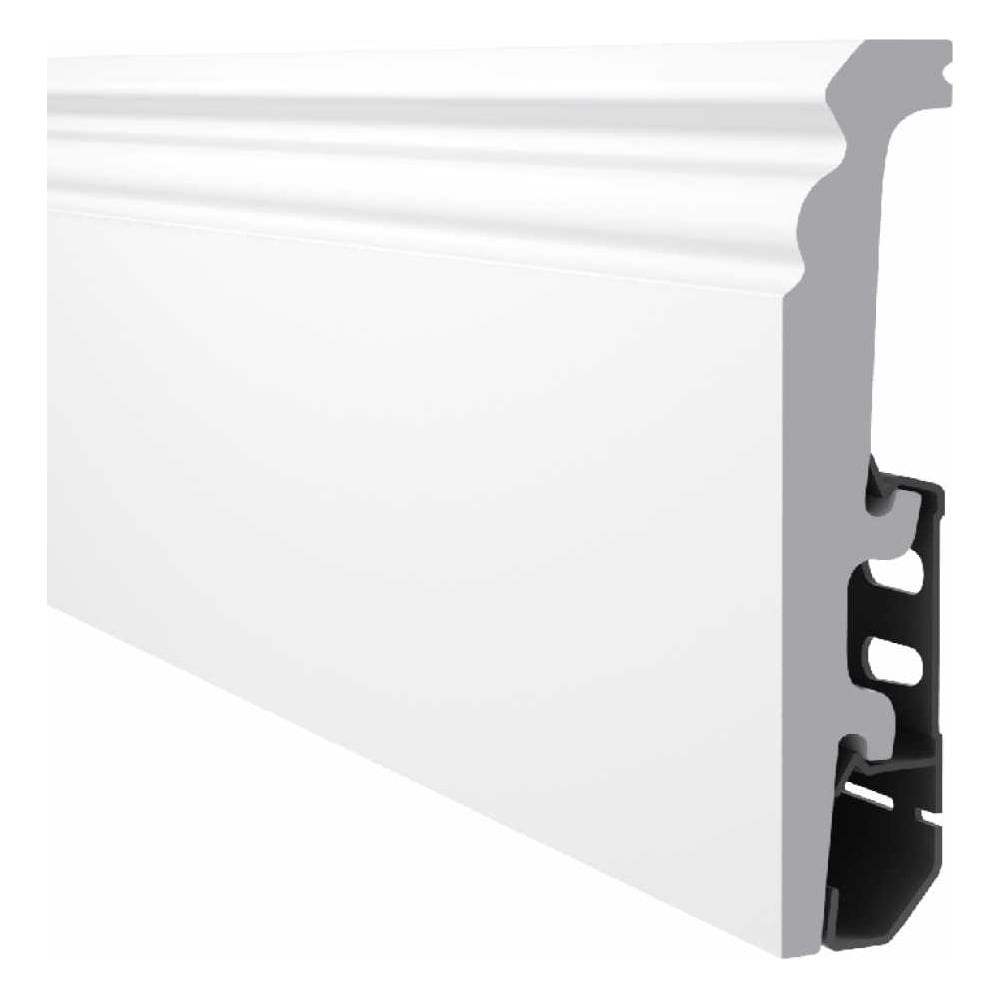 Белый напольный плинтус Arbiton Vega под покраску изготовлен из качественного материала - дюрополимера. Плинтус подойдет под любое напольное покрытие ламинат или ПВХ плитку. Покрасить плинтус можно в любой цвет любой краской не содержащей ацетон. Является идеальным решением для использования в случаях, когда необходимо замаскировать электрические или телевизионные кабели. Перекрывает деформационный зазор до 20 мм. Неоспоримым преимуществом является водонепроницаемость и твердость поверхности, защищающая от ударов и повреждений, нанесенных стене (т.е. при мытье шваброй). Устанавливается на предварительно прикрепленное к стене основание, основу можно прикрепить к стене четырьмя способами: клеем, двухсторонним скотчем, степлером и дюбелями.