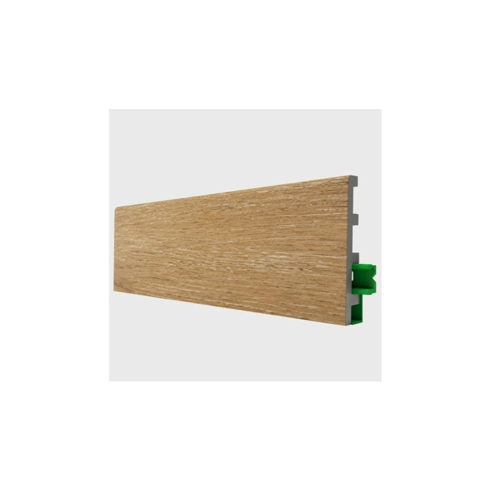 Плинтус Hannahholz 16x81x2000 мм, Дуб натуральный, 404 Polynix 31.03.81404.361 имеет декоративное покрытие TOPLINE, тактильные ощущения, печать высокого разрешения позволяет добиваться натуральности. Изделие отлично сочетается с современными напольными покрытиями: виниловая плитка LVT, каменно-полимерная плитка SPC, традиционный ламинат или инженерная доска. Защита лаком по технологии электронно-лучевого отверждения создает хорошую эксплуатационную устойчивость декоративного элемента. В составе покрытия многослойная, высококачественная, термопластичная пленка на основе поливинила. Плинтус производится из поливиниловых гранул с добавлением воздуха и микрокальцита, что делает материал легким, но прочным, в отличии от традиционных полимеров. Новая технология имеет свойства улучшенного полимера, такие как влагостойкость, пористая структура (позволяет материалу быть более гибким).