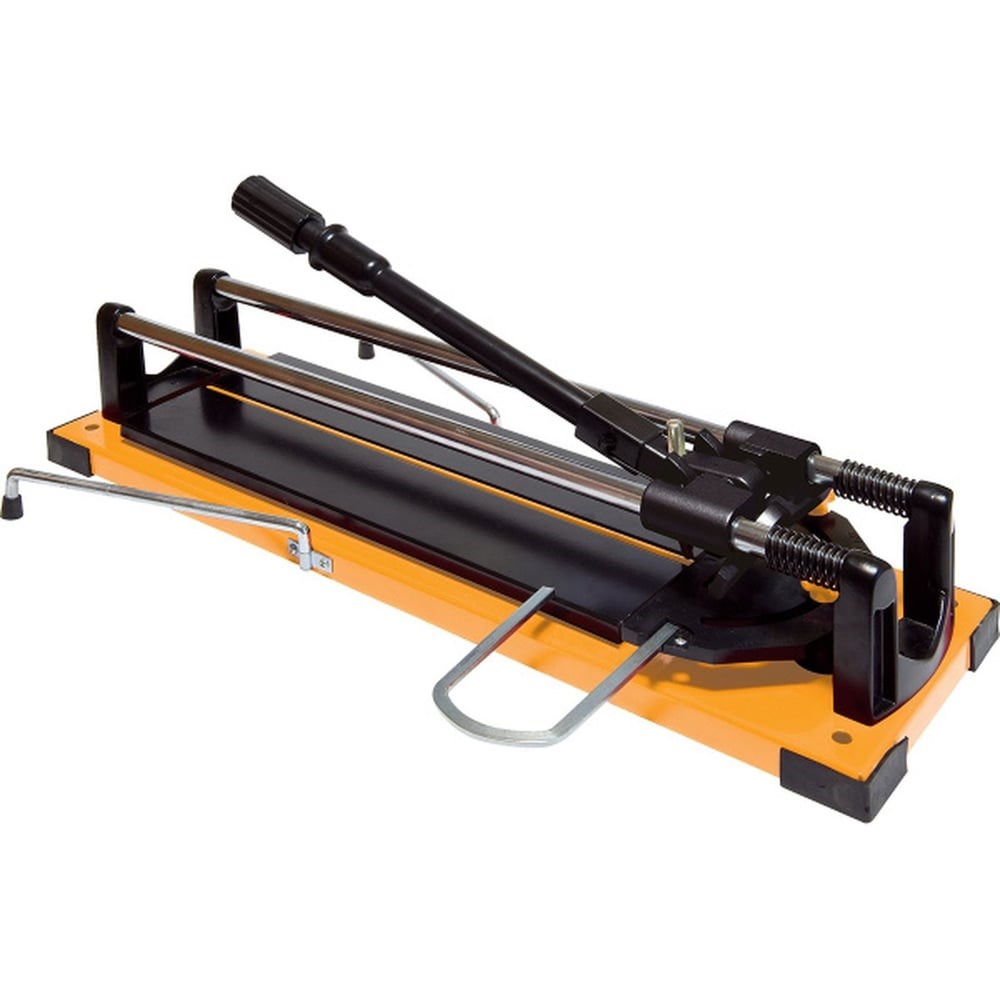 Плиткорез — инструмент для работы с керамической плиткой. Упрощает и ускоряет резку, позволяет получать ровный и аккуратный срез. Высокий ресурс — режущий ролик изготовлен из твердосплавного материала. Возможность фиксации на поверхности рабочего стола — в основании плиткореза имеются специальные отверстия. Плиткорез усиленный имеет плавный ход — каретка свободно передвигается благодаря двум направляющим из высококачественной инструментальной стали с антикоррозийным покрытием. Высокое качество работы — стальное основание обеспечивает устойчивость плиткореза, мягкие амортизирующие накладки предотвращают сдвиг плитки. Комфортная работа — на рукоятке имеется специальный захват.