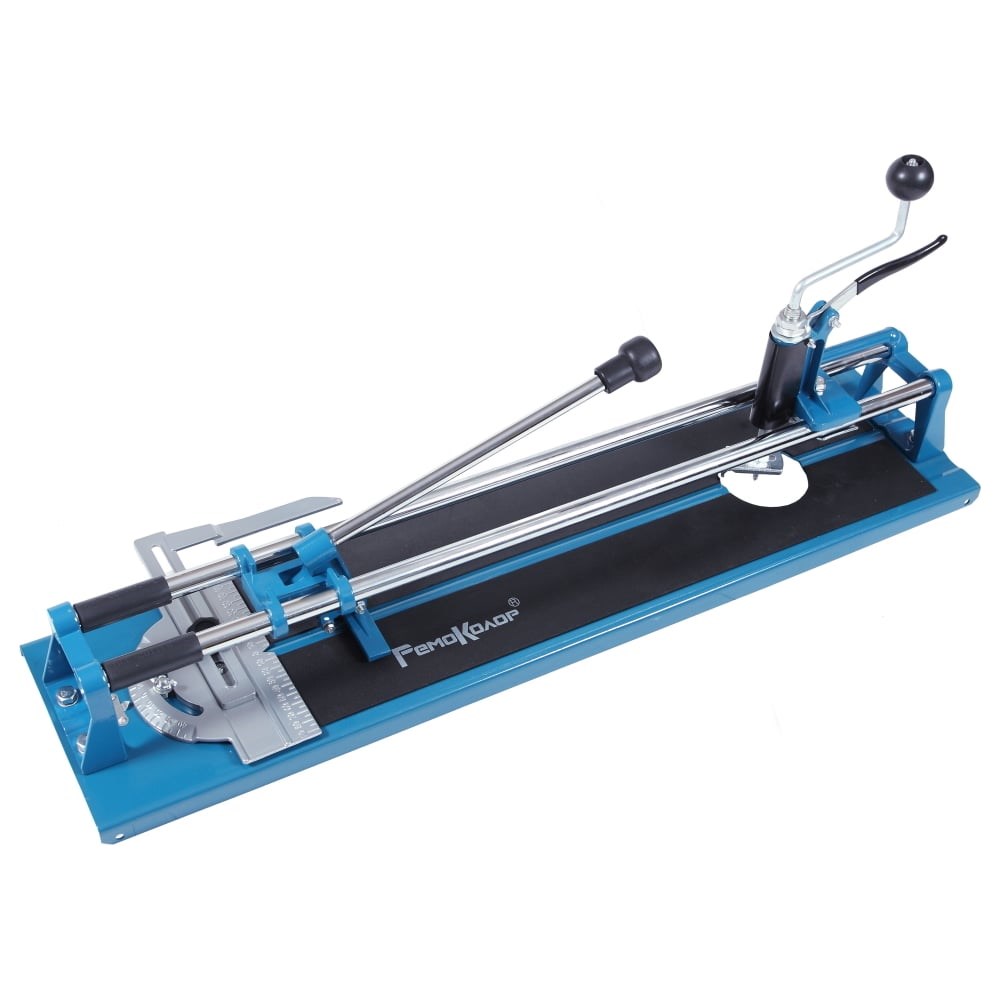 Плиткорез с резаком отверстий, 600 мм РемоКолор 46-0-060 позволяет выполнять аккуратный рез плитки по прямой, под углом или высверливать отверстия диаметром до 80 мм. Линейка обеспечивает рез плитки точно заданной длины. Также предусмотрен транспортир для резки под углом. Стальные направляющие обеспечивают отличное скольжение режущего ролика.