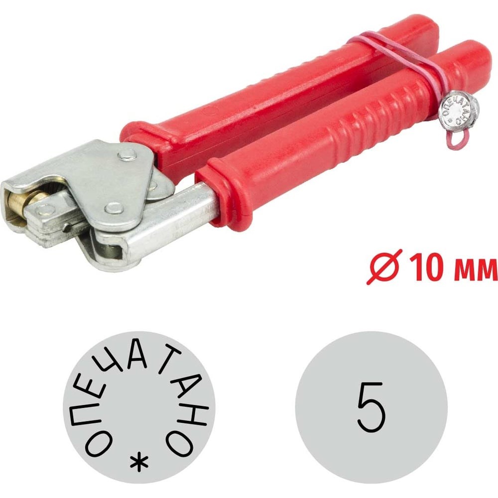 Устройство применяется для опечатывания помещений, замков, приборов и т.д.. Подходит для использования со свинцовыми и пластиковыми пломбами. Уже имеет гравировку на обеих пластинах: Слово ОПЕЧАТАНО Номер 5 При необходимости можно приобрести несколько пломбираторов с различающимися номерами для разных сотрудников или отделов предприятия. В комплект входит только номерной пломбиратор с гравировкой на обеих плашках. Для того, чтобы установить пломбу, необходимо: Обвязать нужное место проволокой и протянуть её концы в отверстия пломбы, выведя их с обратной стороны Пломбу поместить между плашками пломбиратора и с максимальным усилием сжать его ручки. Пломба должна сплющиться, зажав проволоку * Если пломба установлена правильно, извлечь из неё проволоку без усилия или разрушения самой пломбы невозможно