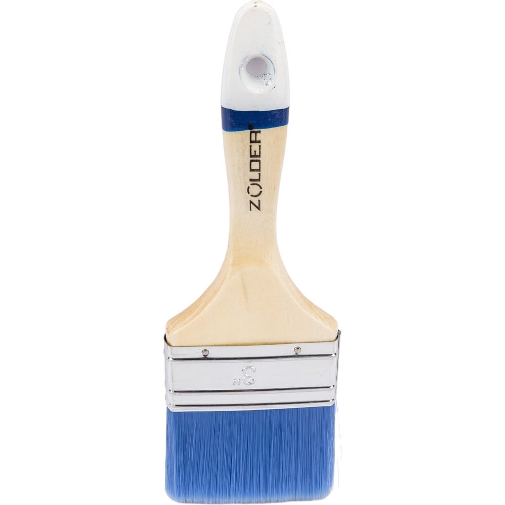 Плоская кисть бренда ZOLDER из серии «Master» выделяется ярким дизайном и отличным качеством • Ширина кисти: 75 мм • Кисть предназначена для дисперсионных, латексных, всех типов водорастворимых красок и лаков • Щетина не выпадает при работе благодаря прочной металлической обойме с крепким захватом • Плотная набивка щетиной позволяет набирать на кисть больше краски • Удлинённая искусственная щетина обеспечивает равномерное нанесение краски. Оригинальный дизайн кистей: • Щетина синего цвета • Брендированная деревянная лакированная ручка
