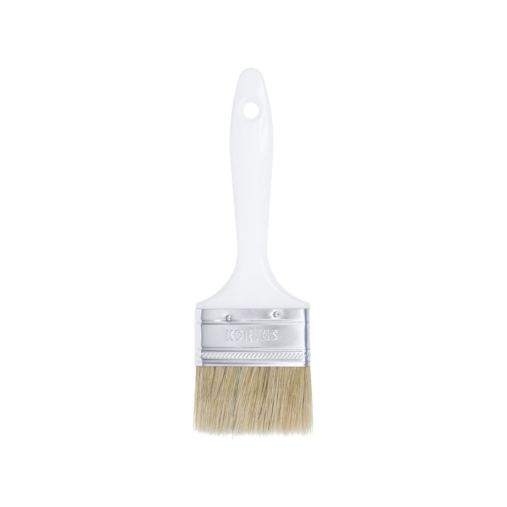 Плоская кисть KORVUS Хобби 63 мм, натуральная щетина, пластиковая рукоятка 0102625 имеет классическое исполнение и подойдет для окрашивания наружных и внутренних поверхностей. Удобная профилированная рукоятка обеспечивает надежное удержание инструмента. Также она защищена от влаги. Бандаж соединяет между собой рукоять и щетину, исключая выпадение волокон, что продлевает срок службы инструмента.