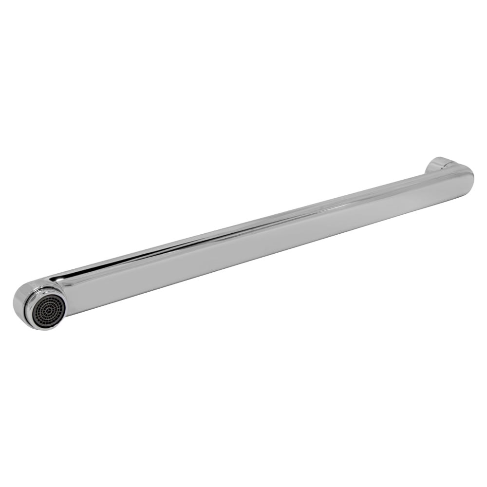 Основным предназначением излива является подача воды, поступающей из смесителя. Представляет собой L-образную хромированную деталь длиной 50 см. Универсальный излив для смесителя изготовлен из стали и имеет хромированное покрытие. Устройство оснащено аэратором, проходя через который, вода насыщается множеством пузырьков воздуха, позволяя формировать струю в мягкий и ровный поток, а также экономить расход воды. Данный излив отлично подойдет для почти любой ванной комнаты за счет своего лаконичного и минималистичного дизайна.