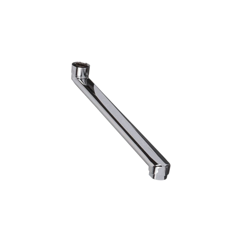 Излив плоский L-образный 20717 имеет длину 30см. Излив изготовлен из нержавеющей стали. Толщина излива 0,5мм. Аэратор пластиковый с решеткой из нержавеющей стали. Гайка силуминовая, размер 3/4".