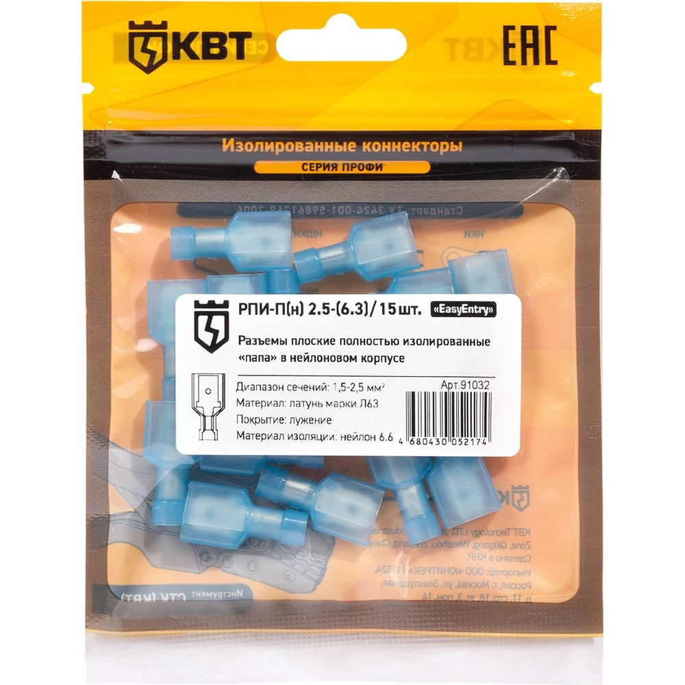 Плоский разъем КВТ РПИ-Пн 2,5-6,3 15шт. 91032