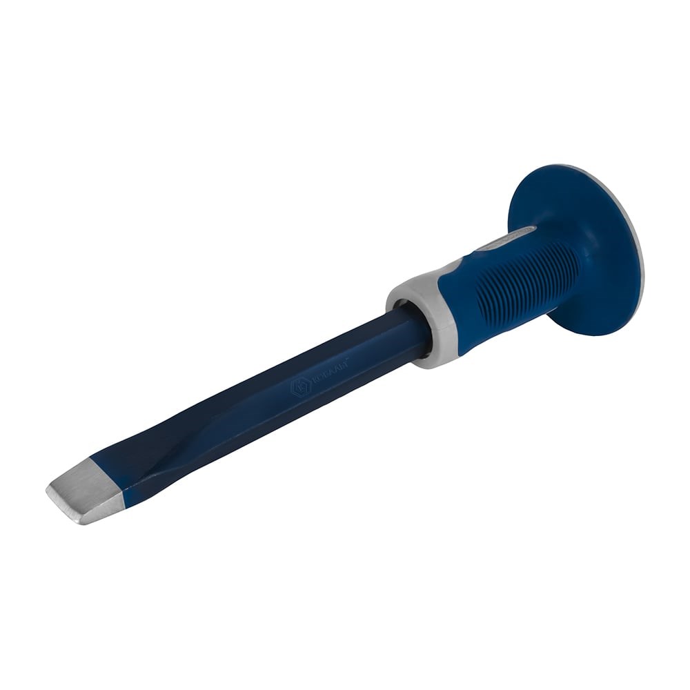 Плоское зубило 25х300 мм с протектором КОБАЛЬТ 249-570 обеспечивает высокое качество работы с кирпичом, бетоном и иными аналогичными материалами. Протектор надежно защищает пальцы от попадания молотком. Длина инструмента позволяет выбрать оптимальный угол работы.