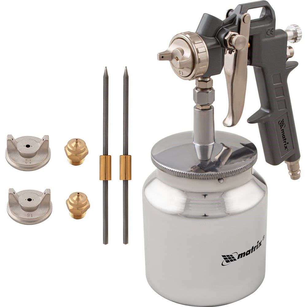Пневматический краскораспылитель MATRIX 57317 предназначены для нанесения защитных, декоративных, изоляционных покрытий на различные поверхности. Он имеет нижнее расположение бачка и вмещает в себя до 0.75 литра краски для долгой работы без дозаправки. Конструкция краскопульта выполнена из металла, благодаря чему устойчива к механическим повреждениям в случае падения. В комплекте прилагаются сопла диаметром 1.2, 1.5 и 1.8 мм, поэтому инструмент готов к использованию.