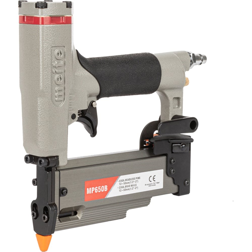 Шпилькозабивной пистолет Meite MP650B предназначен для скрепления небольших деталей из дерева или пластика, но не для несущих конструкций. Он идеально подходит для работы с планками, штапиками, изготовлением оконных рам из дерева, монтажа молдинга и декоративных элементов, где требуется аккуратный внешний вид готового изделия. Для этого инструмента используются микрошпильки размером от 12 до 50 мм, которые при вбивании не оставляют следов на поверхности, что особенно важно для финишных работ.