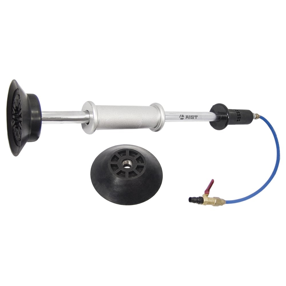 Пневматический обратный молоток AIST 67918001 00-00008979 помогает выправить небольшие вмятины на автомобилях без сверления. Надежно фиксируется на поверхности детали с помощью вакуумной присоски. Использование инструмента не требует дополнительной чеканки или обстукивания. Металлическая конструкция изделия устойчива к механическим повреждениям. Безопасная рукоять обеспечивает крепкий хват.
