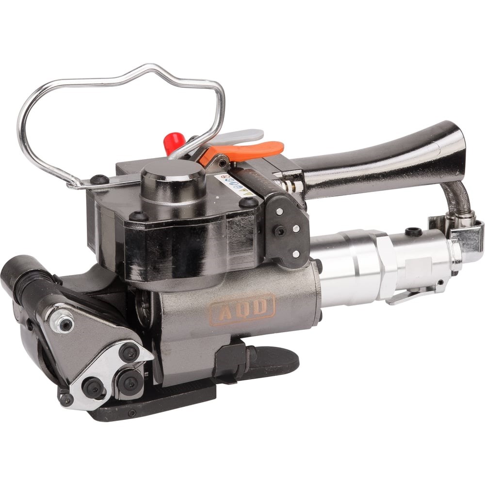 Автоматический пневматический стреппинг инструмент для пп и пэт лент AQD 13-19, Т18_967846 предназначен для упаковки грузов и товаров с использованием полипропиленовых и полиэстеровых лент шириной от 13 до 19 мм. Толщина используемых лент от 0,5 до 1,5 мм.Высокая эффективность соединения концов ленты обеспечивается сваркой трением. Эффективность сварки от 80 до 90 % при 6 Бар. Кроме того, в данном инструменте есть защита от касания сварочных пяток друг с другом на холостом ходу, что увеличивает срок службы механизма.Регулировка зазора между натяжными элементами, а также частями отвечающими за сварку ленты, несомненное преимущество данного инструмента. За счет регулируемого зазора уменьшается вероятность порчи частей инструмента при случайном включении цикла натяжения или сварки без ленты.Инструмент имеет ограничение по применению в холодных помещениях, как и весь пневматический инструмент в целом. Температура окружающей среды не должна опускаться ниже +5С.Простой и надежный пневматический инструмент для обвязки стреппинг лентами. Имеет мощное натяжение.Сила натяжения: до 3500 H.